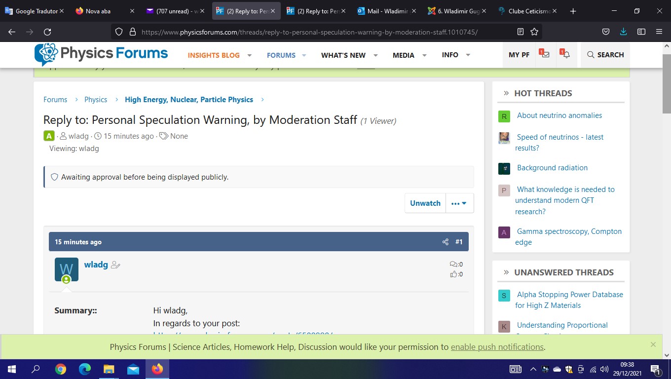A justificativa do Physics Forums para rejeitar meu tópico: