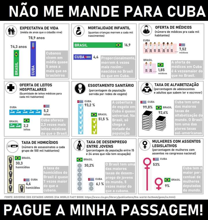 Achei que isso era a descrição do Brasil depois da destruição das leis trabalhistas sustentando a casta de parasitas da família Bolsonaro que você quer reeleger.Arcanjo Lúcifer escreveu: ↑Sex, 31 Dezembro 2021 - 12:01 pmE sim, Cuba é uma fazenda de escravos que sustentam uma casta de parasitas.
