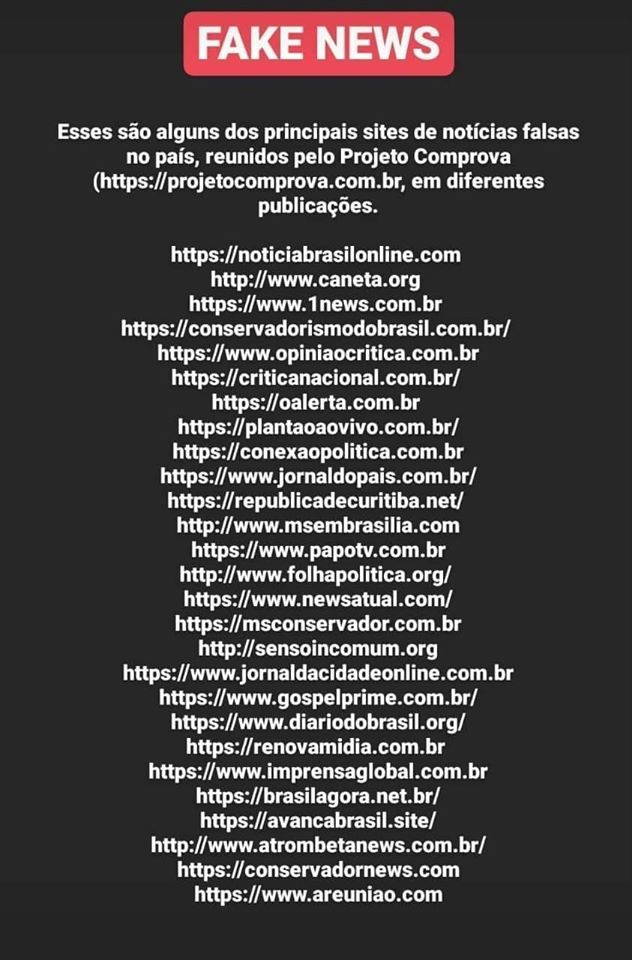 Somente fazer a lista e dizer "São todas divulgadoras de FakeNews" não pode ser visto como um trabalho sério e confiável.