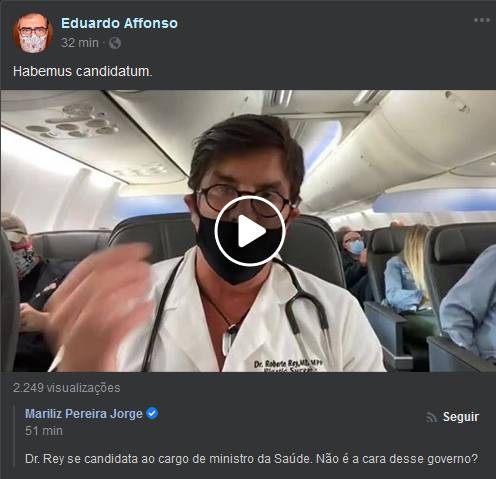 Qualquer médico que assuma o Ministério da Saúde e queira permanecer no cargo por mais de 15 dias terá que renunciar a esse juramento. Será, portanto, um mau profissional de saúde, que aceitará reduzir o Ministério da Saúde a mero despachante dos patológicos desejos de Bolsonaro. Pior, será um cúmplice de um empreendimento que, sem exagero, já pode ser chamado de social-darwinista – em que a morte por Covid-19 é vista como uma forma de depuração da sociedade, pois só abate aqueles que não têm ‘histórico de atleta’”.